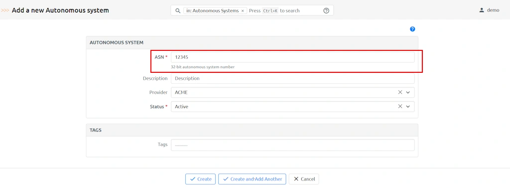 The app introduces an Autonomous System (AS) model that allows teams to represent network-wide ASNs and their associated metadata.