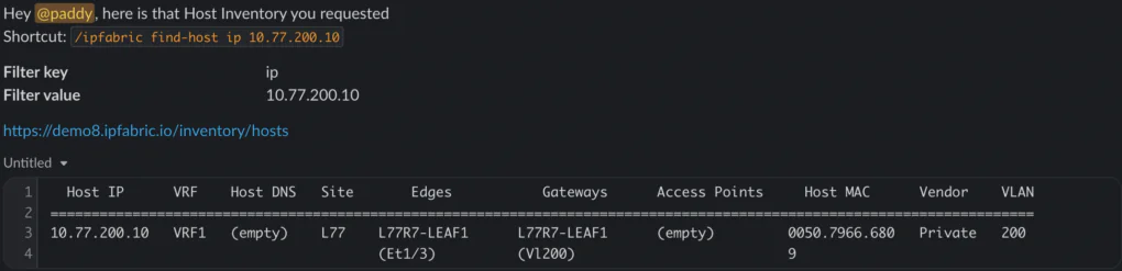 Because ChatOps integrates directly with Nautobot, teams can retrieve authoritative network data from the system of record.