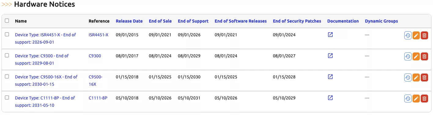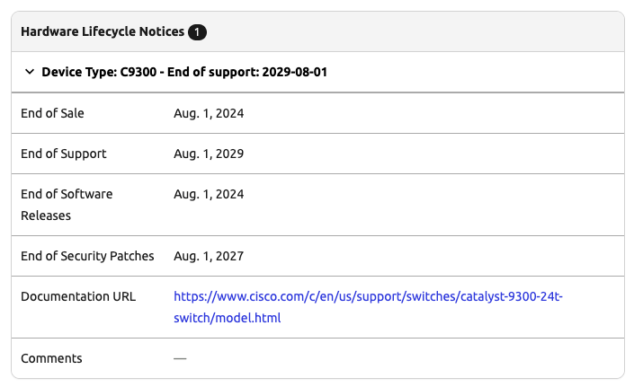 Most network teams track device lifecycle information in spreadsheets, vendor portals, or internal documentation. Security teams monitor vulnerability databases separately. Asset inventory lives in another system. These silos make it difficult to answer fundamental operational questions: