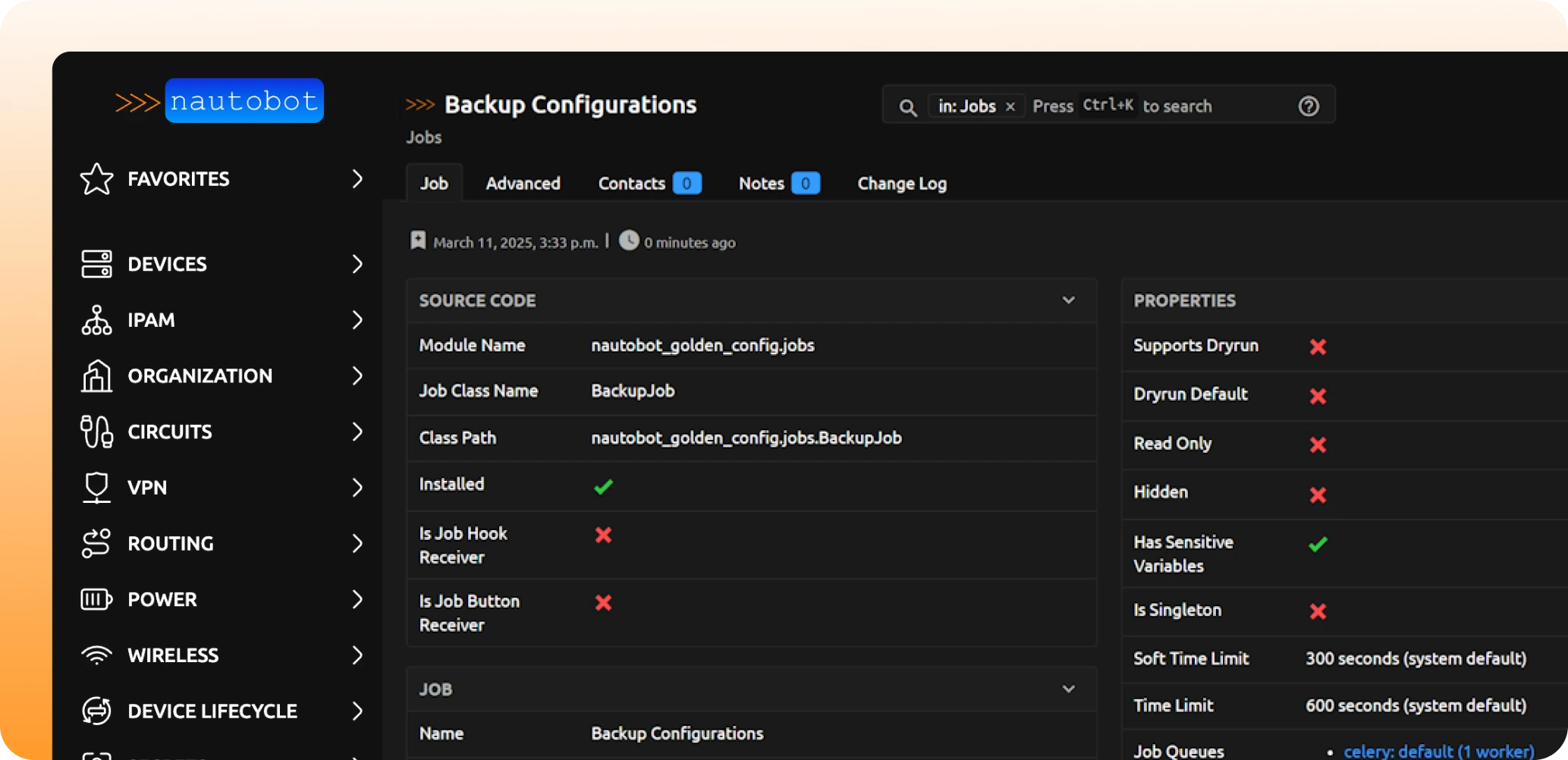 By integrating automation execution with the network source of truth, teams can build more reliable automation pipelines. Infrastructure data, automation tasks, and operational workflows remain aligned within a single platform.